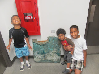 I-Man, Mr. Mr. and J-Man in front of a 900 lb slab of copper